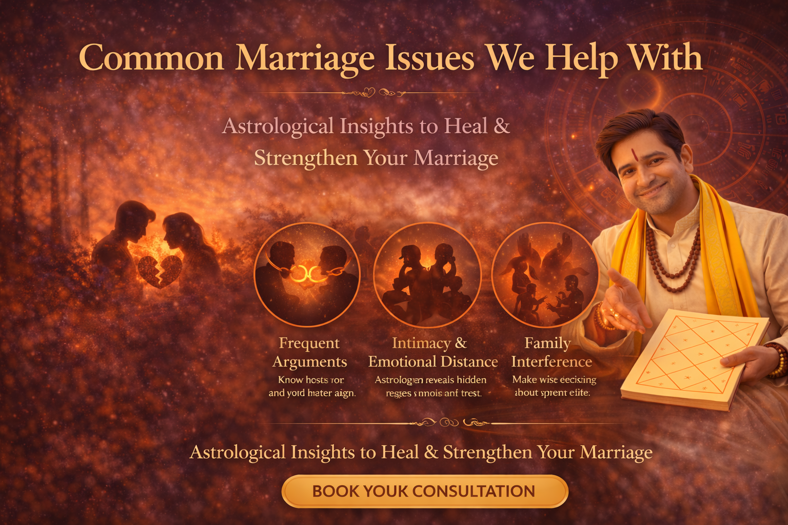 As a trusted astrologer in Guwahati for marriage problems, he helps identify the root causes and offers clear direction to improve your relationship.